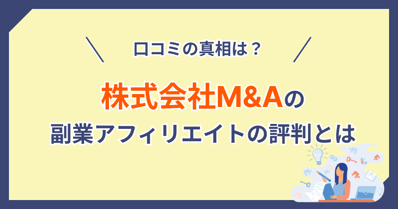 本記事では、株式会社M&Aの評判・口コミ・安全性・使いやすさを横断的に検証し、「株式会社M&Aは怪しいのか?」という疑問に根拠をもって答えます。企業情報の開示状況、サポート体制、UI/UXの分かりやすさ、実利用者の声までを整理し、株式会社M&Aの長所と留意点を丁寧に解説。結論を先取りせず、読者が自分の基準で比較・判断できる構成にしました。副業やアフィリエイトに前向きな方は、本稿を手引きとして株式会社M&Aの実像を把握し、納得感のある意思決定につなげてください。